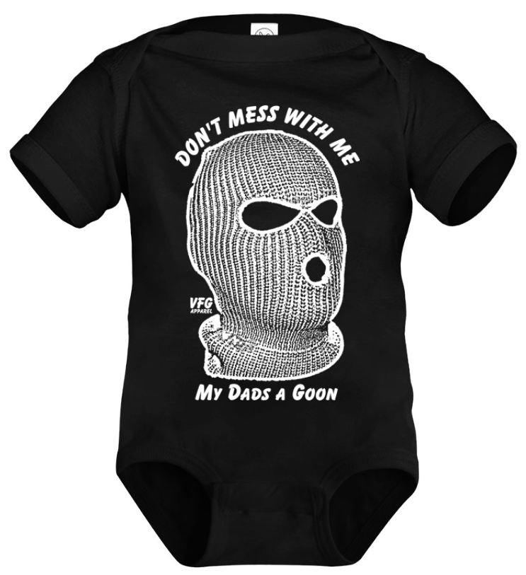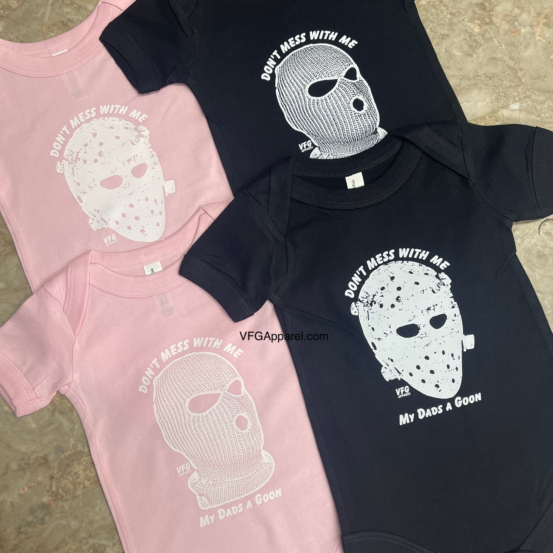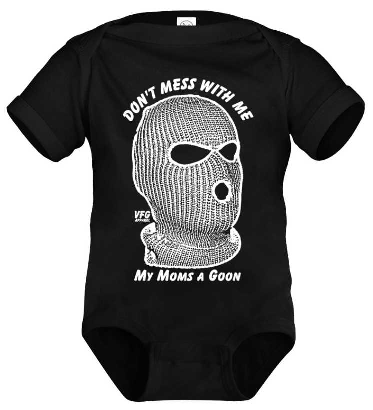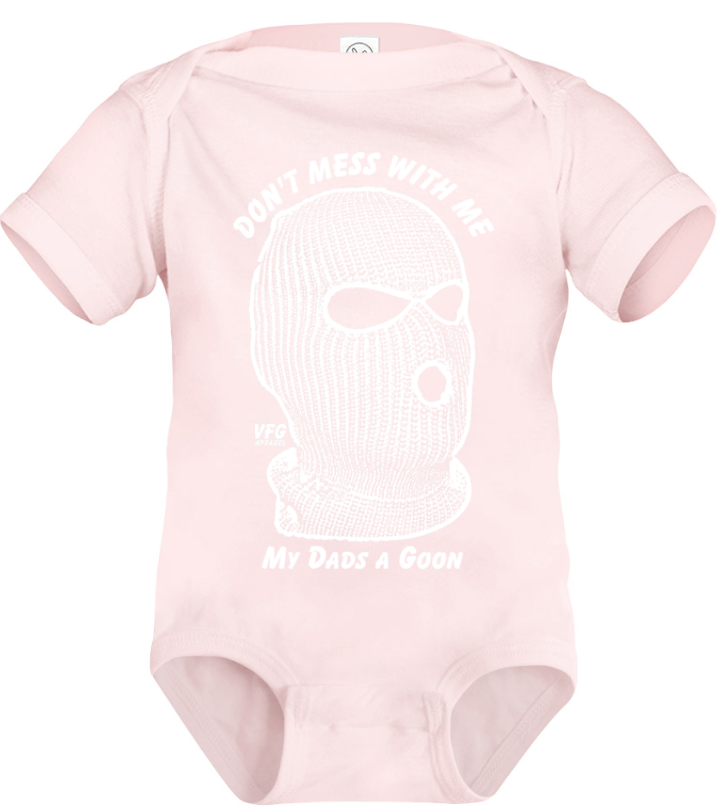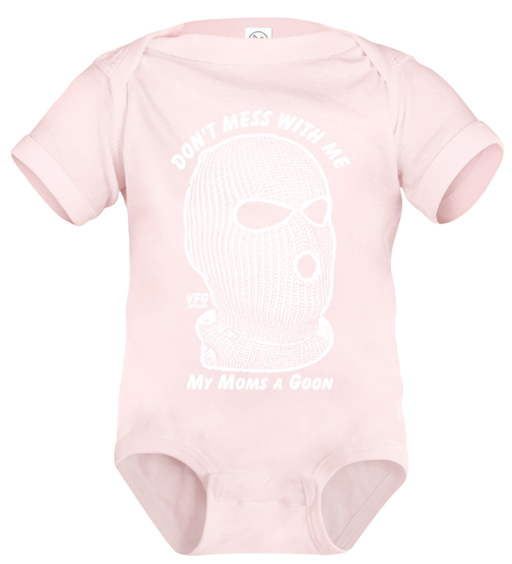 - Stylish Statement: The bold "My Mom's / Dad's a Goon" graphic adds a fun and edgy touch, celebrating your little one's unique family heritage with style.