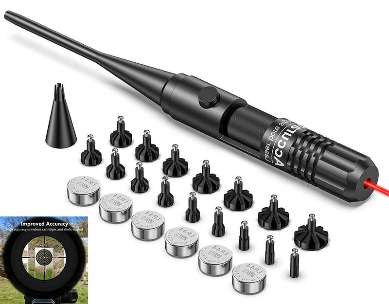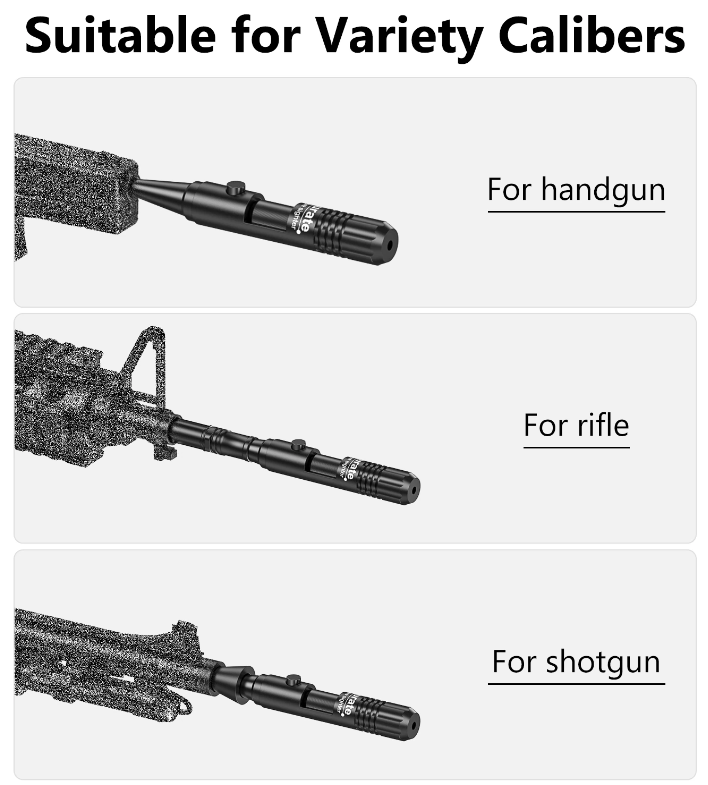 • Improve Accuracy: Laser bore sight emit a straight laser beam, allows for quick and accurate resetting of any sights and optics, saving your time and cartridges.