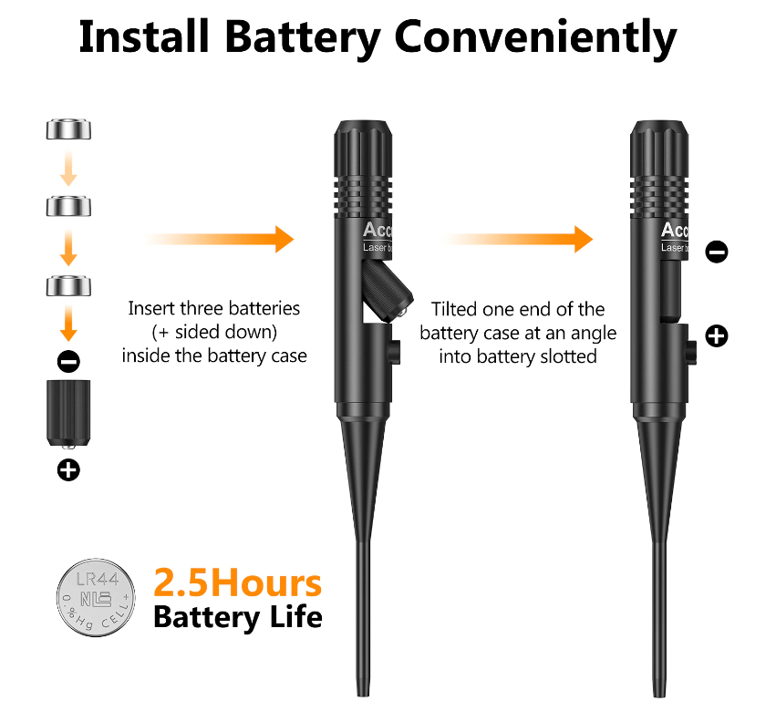 • Easy to Use: Upgraded battery compartment make the laser bore sighter easy to install and lock the batteries. 2 sets batteries are included in the package.