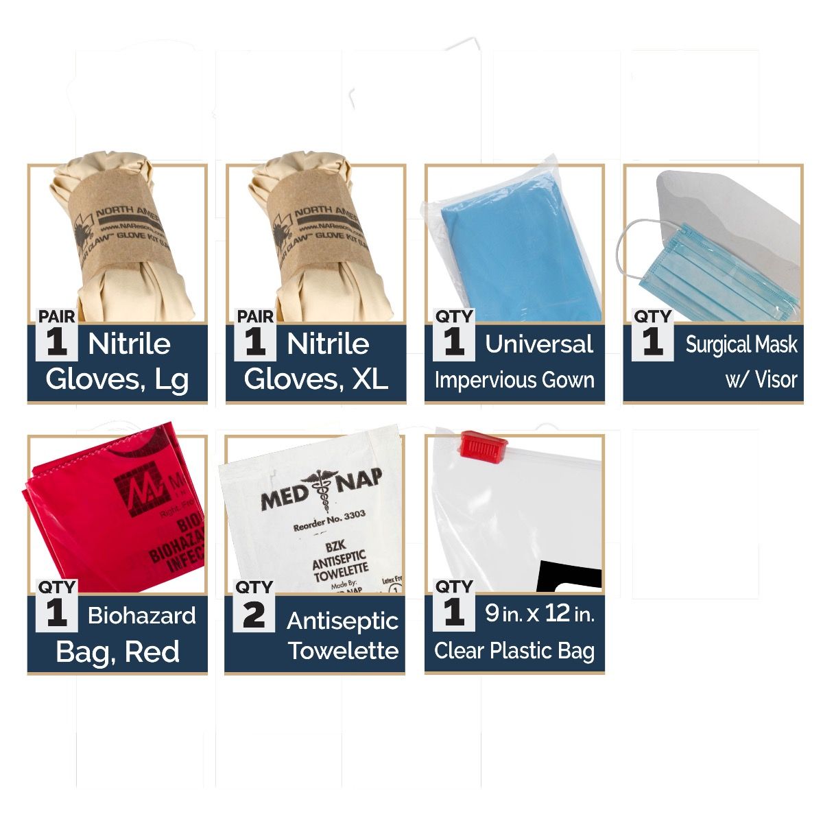 The NAR Biological Personal Protection Kit is a component of the US Naval Boat Response Aid Kit. This kit can be utilized by the US Navy, Military Sealift Command Ships, and Commercial Afloat Vessels, other water-born vehicles and Border Patrol Officers. Additionally, this kit was designed to maximize personal protection when handling and managing detainees, refugees, etc.