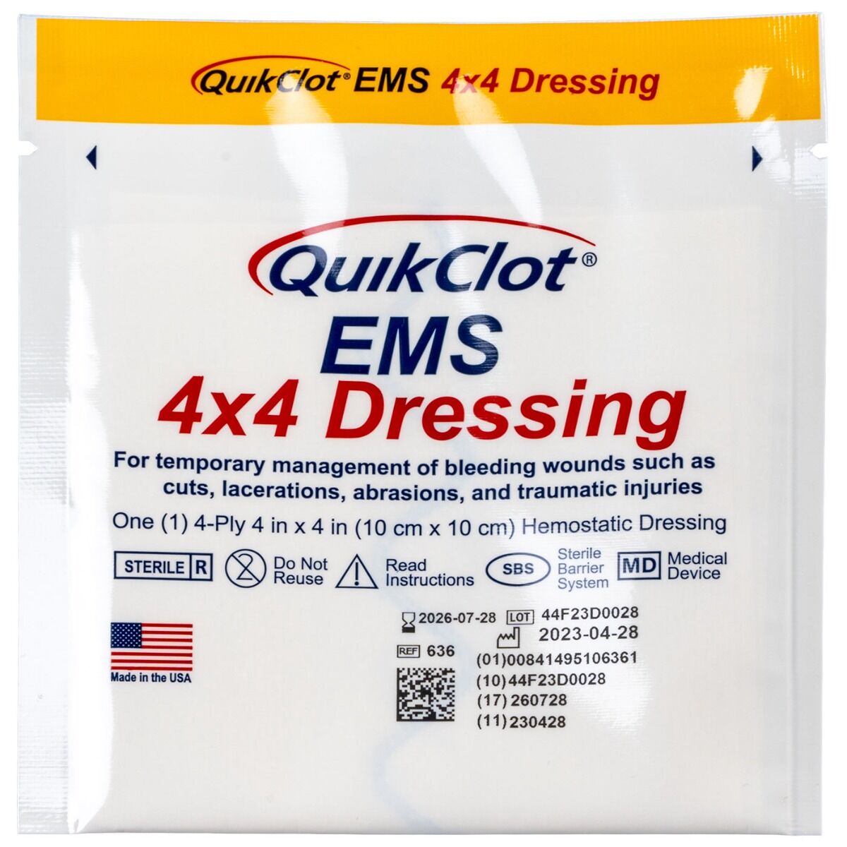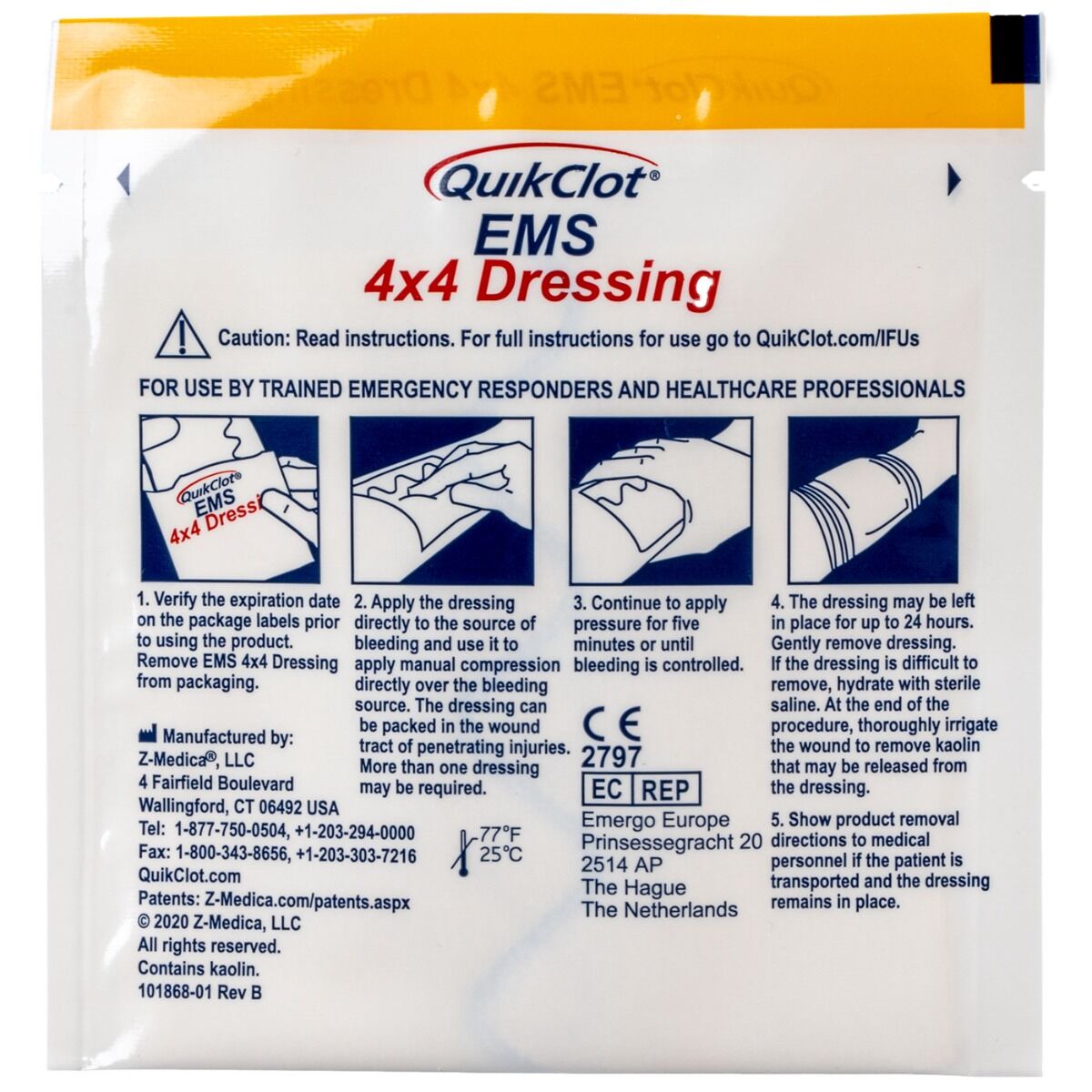 - Easy To Use: QuikClot EMS 4 x 4 Hemostatic Gauze uses the same placement technique as standard gauze