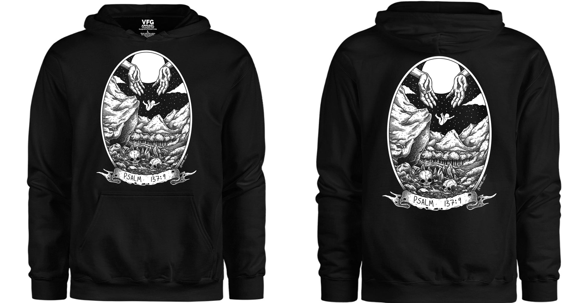 Hoodie: Gildan Heavy blend hooded sweatshirt. 8 oz. (271g), 50/50 US cotton/polyester, fleece. Pre-shrunk.