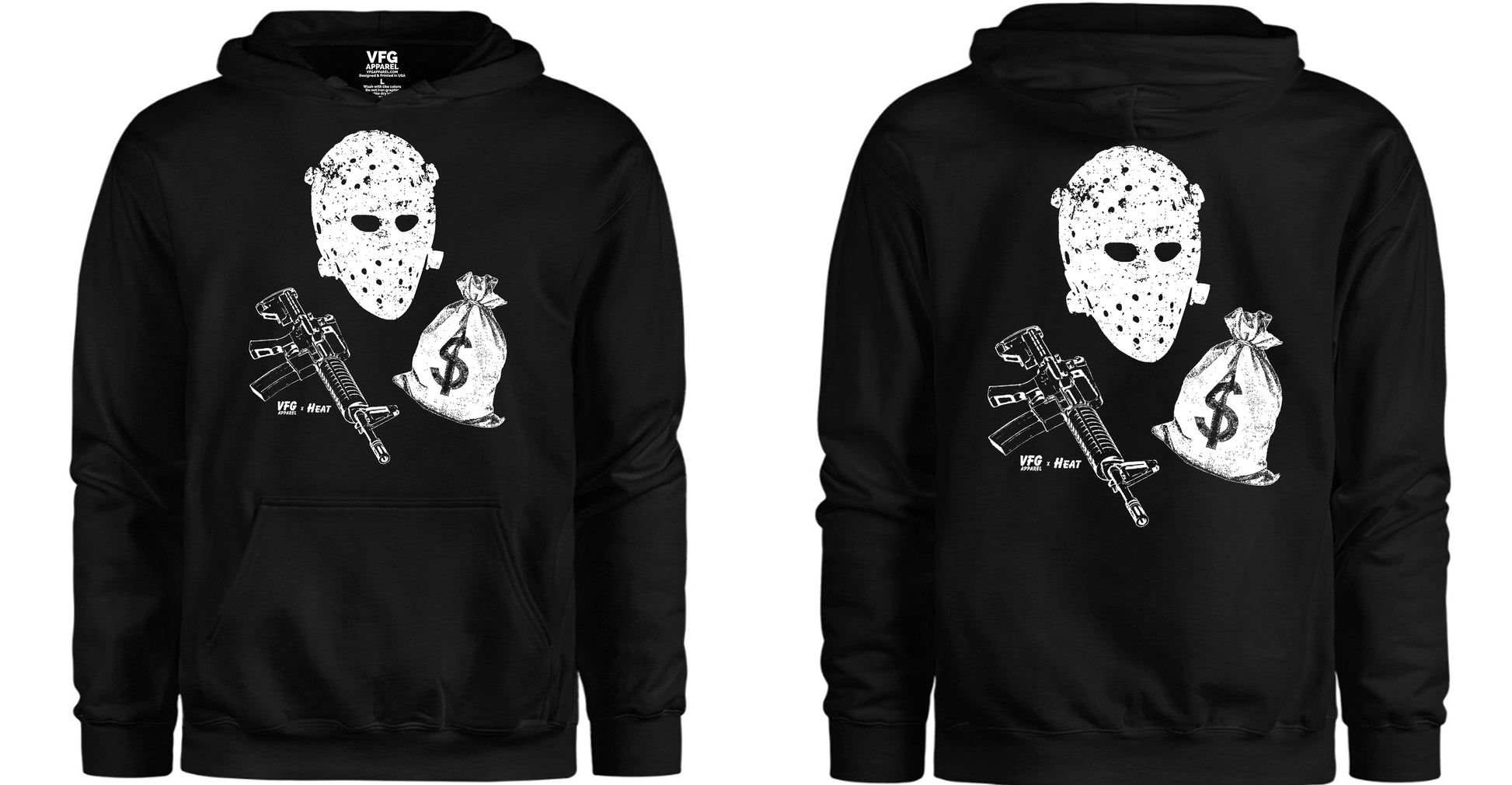 Hoodie: Gildan Heavy blend hooded sweatshirt. 8 oz. (271g), 50/50 US cotton/polyester, fleece. Pre-shrunk.
